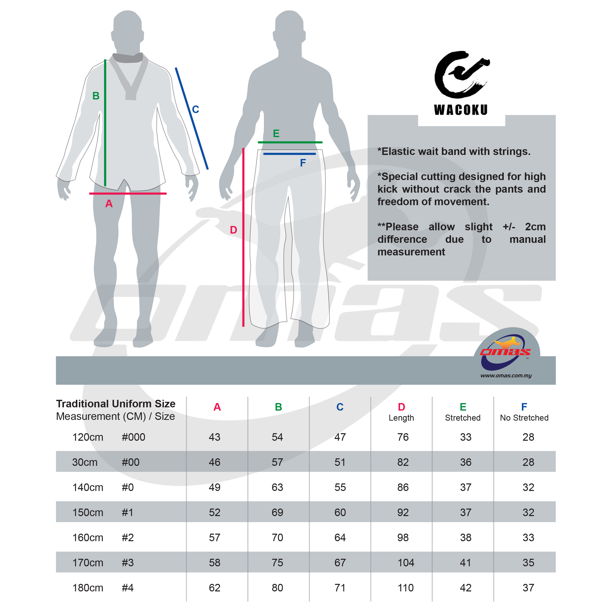 Dobok Taekwondo Wacoku ini ringan dan tahan lama. Seragam ini diperbuat daripada poli-kapas 90/10 dan mempunyai jalur elastik di pinggang untuk memastikan keselesaan dan mobiliti maksimum.