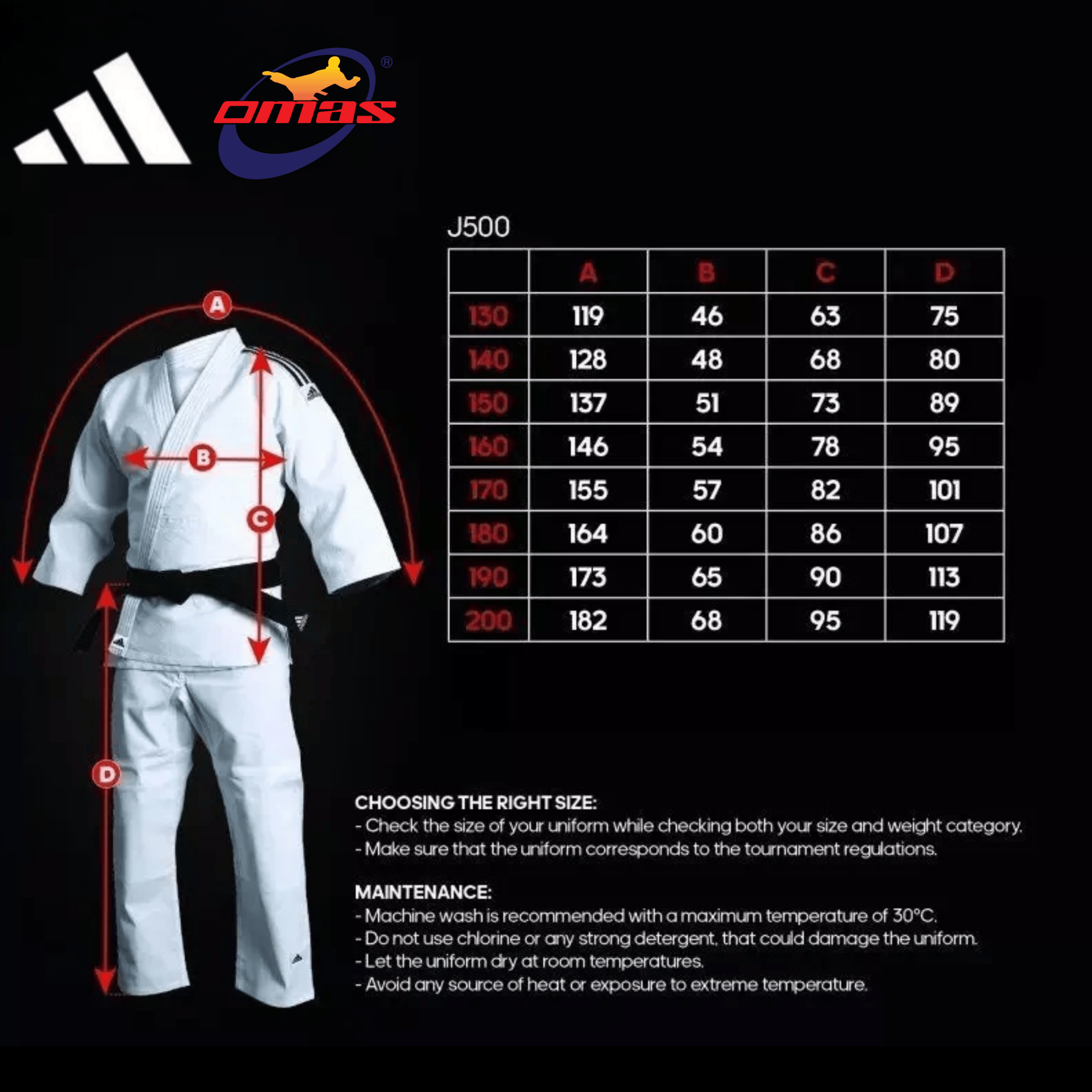 Adidas Judo Uniform J500 ialah judogi berat sederhana yang direka untuk atlet muda dan bercita-cita tinggi semasa latihan. Direka dengan keseimbangan sempurna antara keselesaan, ketahanan dan kekuatan – sesuai untuk sesi latihan harian.