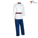 The Adidas WT ADI-Poomsae Youth Male Taekwondo Uniform is made from a 55% cotton, 45% polyester blend, offering durability and comfort. Designed for Poomsae practitioners, it follows official WT regulations. The structured fabric enhances technical performance, while the uniform features a black V-neck with a front-side opening. The pants come with an elastic waistband and extra drawstring for a secure fit. Embroidered Adidas and WT logos add a premium touch.