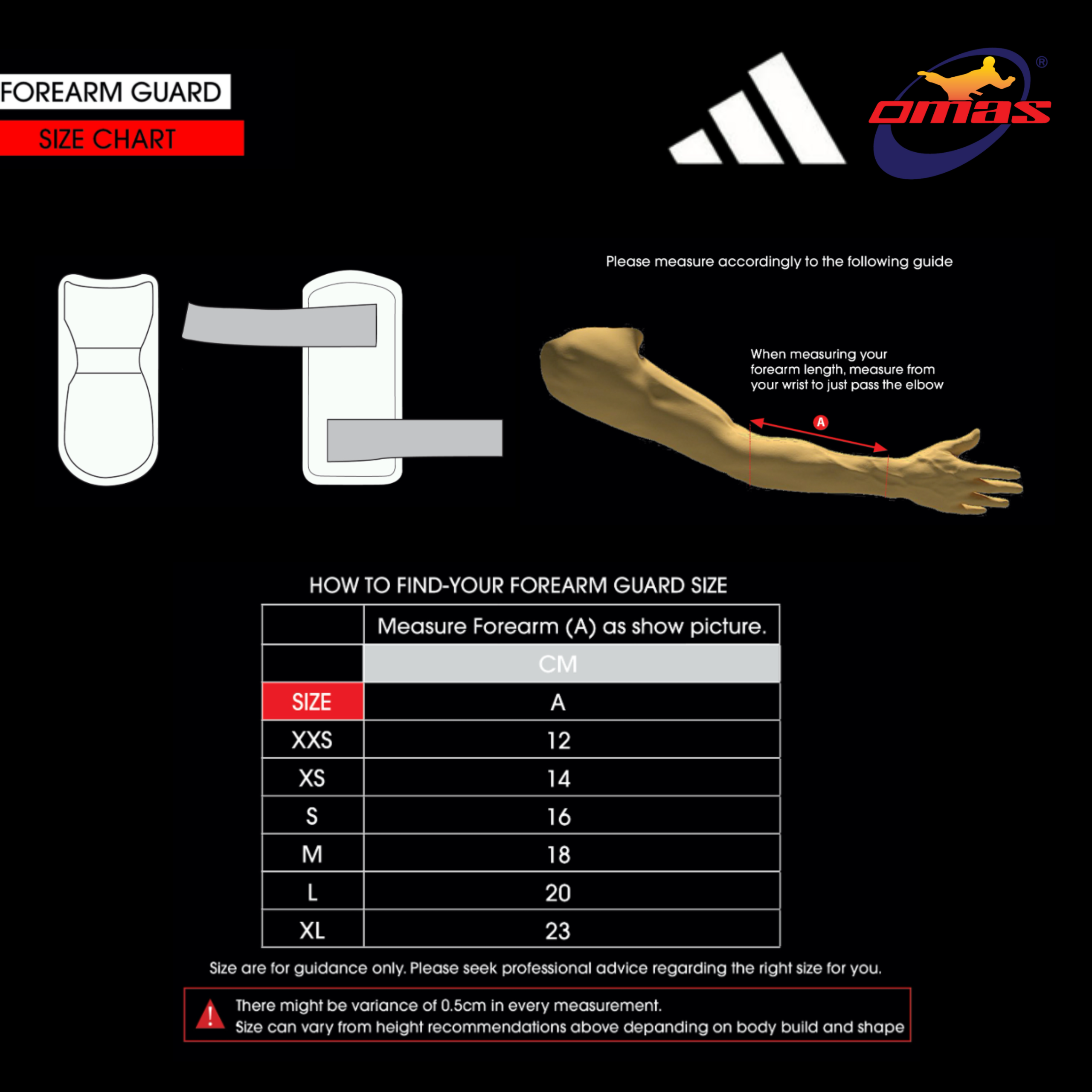 Plat vinil acuan direka mengikut kontur lengan bawah, dilapik dengan buih EVA dan diikat dengan dua tali elastik untuk memastikan ia kekal pada tempatnya. Ringan tetapi tahan lasak, pelindung ini menyebarkan hentakan daripada latihan ridge-hand hingga ke sekatan gaya keras.