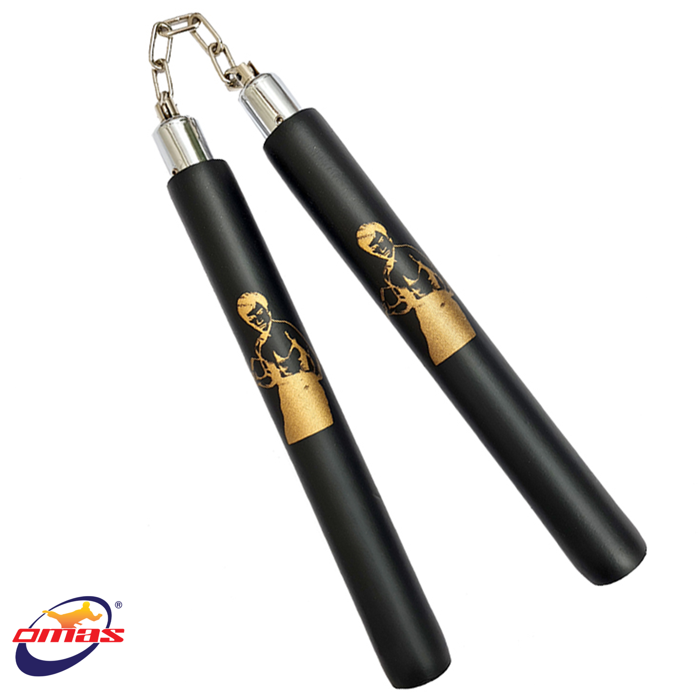 Dilengkapi dengan rantai galas bebola, ia memberikan putaran yang lancar dan pantas, menjadikannya lebih realistik untuk latihan. Reka bentuk emas Bruce Lee menjadikan nunchaku ini istimewa sebagai penghormatan kepada lagenda seni mempertahankan diri yang mempopularkan senjata ini melalui filemnya.