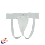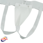The OMAS Elastic Male Groin Guard is a traditional-style protective cup widely used in various sports, from football to martial arts.