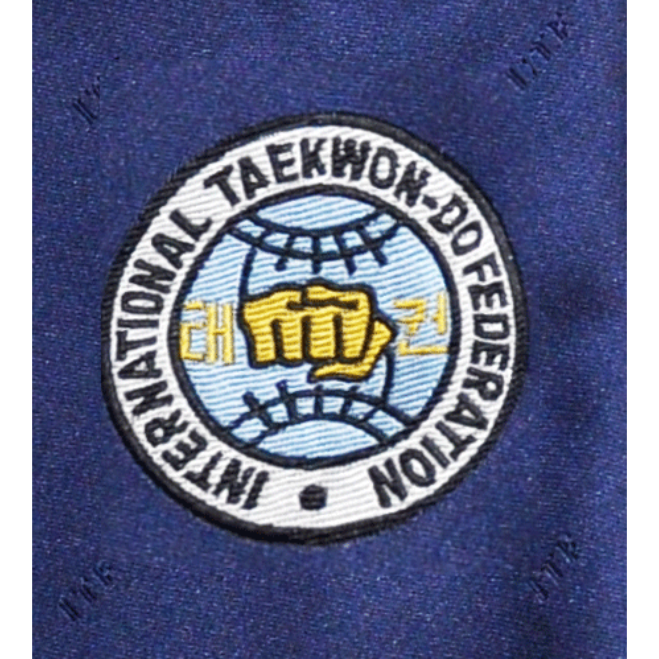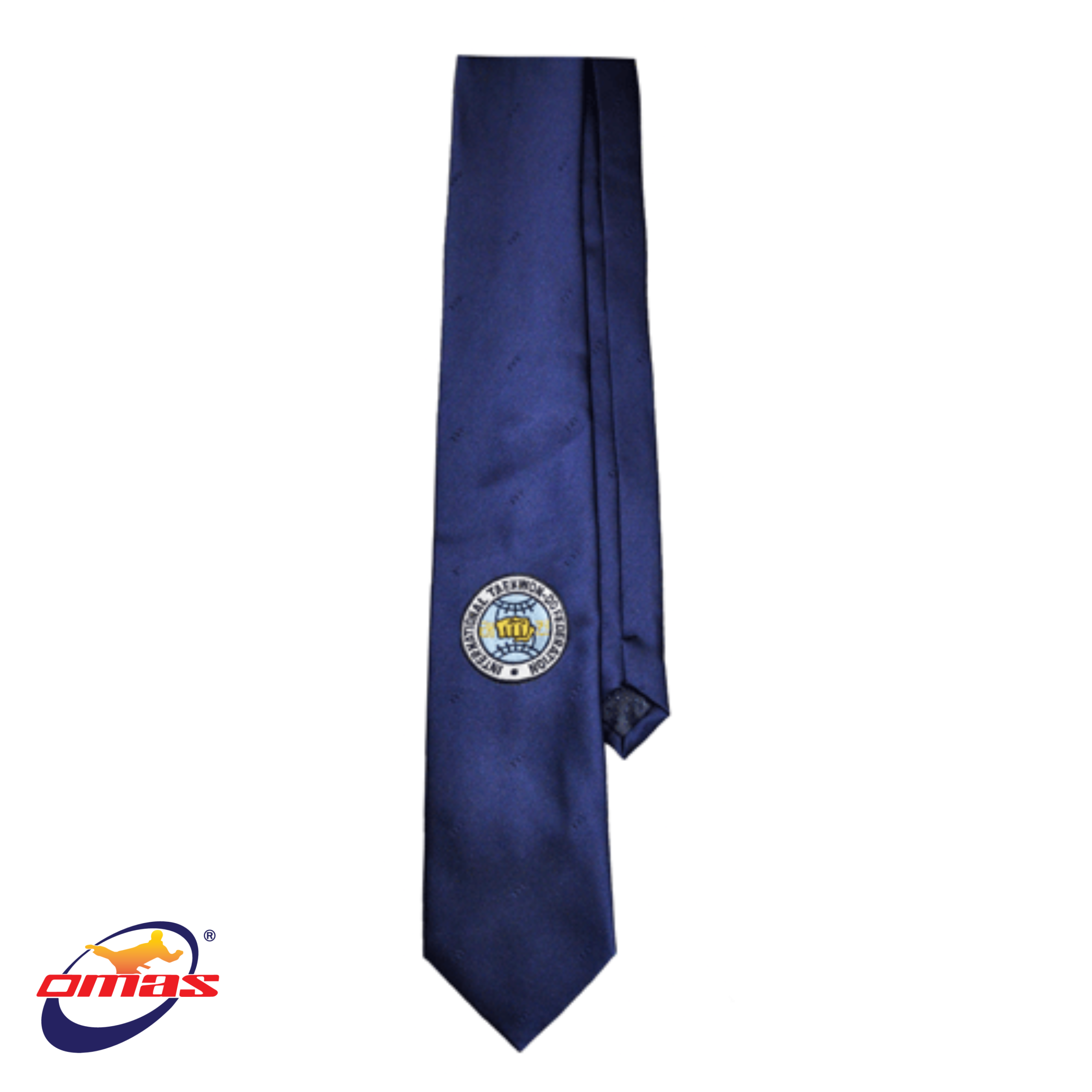 High-quality ITF Approved 100% silk necktie, featuring a woven International Taekwon-Do Federation (ITF) badge and shadow ITF lettering subtly integrated into the deep navy-blue background. Designed for a professional and elegant look, this necktie is ideal for official Taekwon-Do events, instructors, and federation representatives.