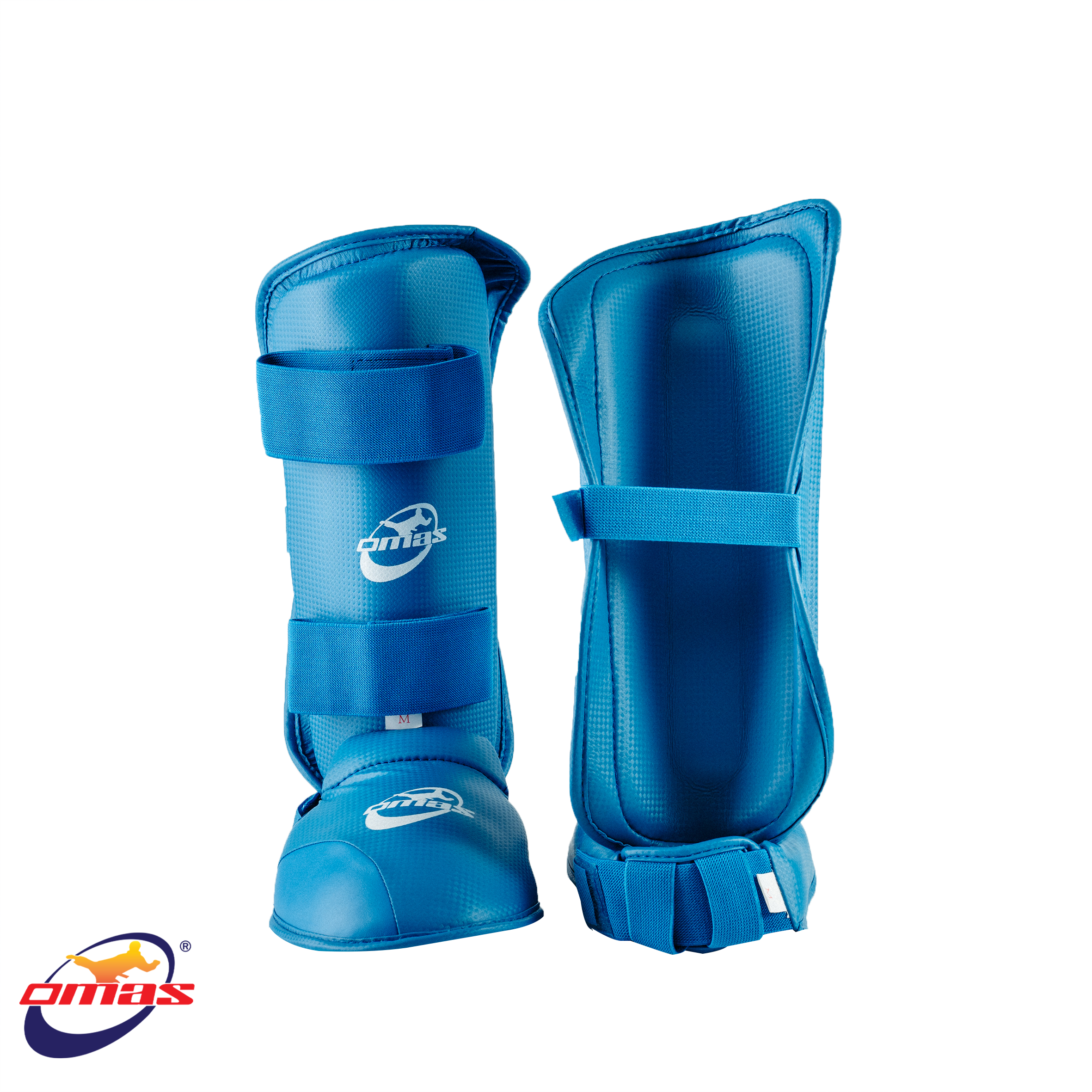 The OMAS PU/MAYA Karate Shin and Instep Guard features an intensive Velcro interconnection system that securely combines shin and foot protection for maximum safety and performance.