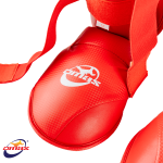Pelindung Tulang Kering dan Kaki Karate PU/MAYA OMAS dilengkapi dengan sistem pengikat Velcro intensif yang menggabungkan perlindungan kaki dan tulang kering untuk keselamatan serta prestasi maksimum.