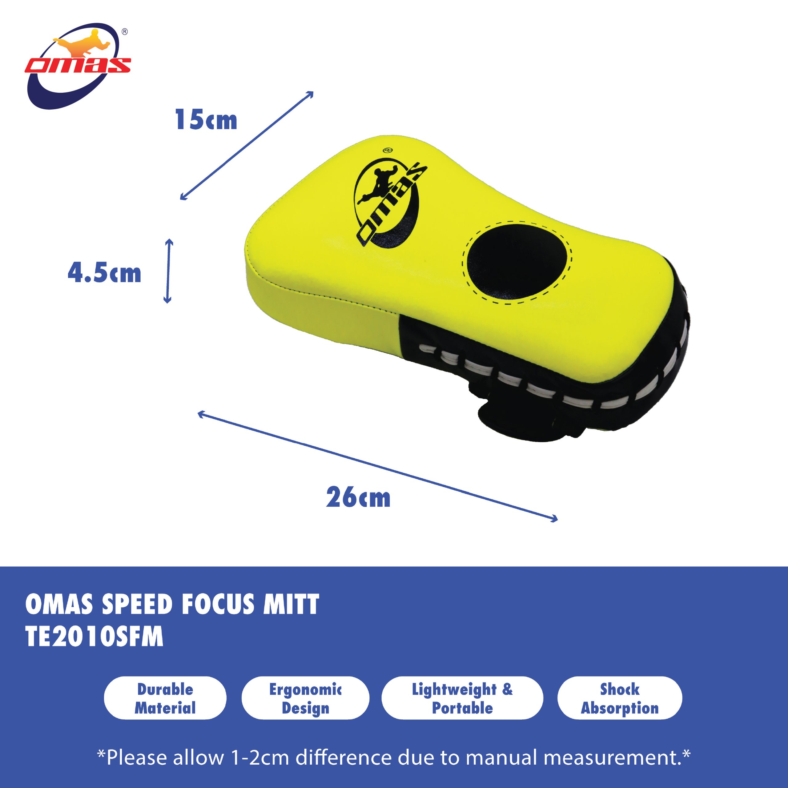 Elevate your training with the OMAS Speed Focus Mitts, designed for boxing, MMA, and fitness enthusiasts. These mitts offer a combination of durability, comfort, and protection, making them an essential tool for improving focus, speed, and coordination during training.