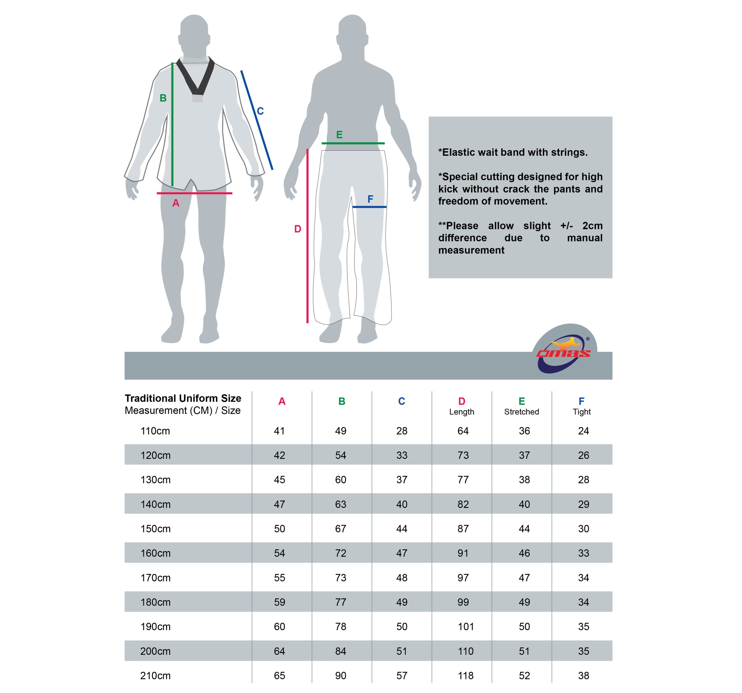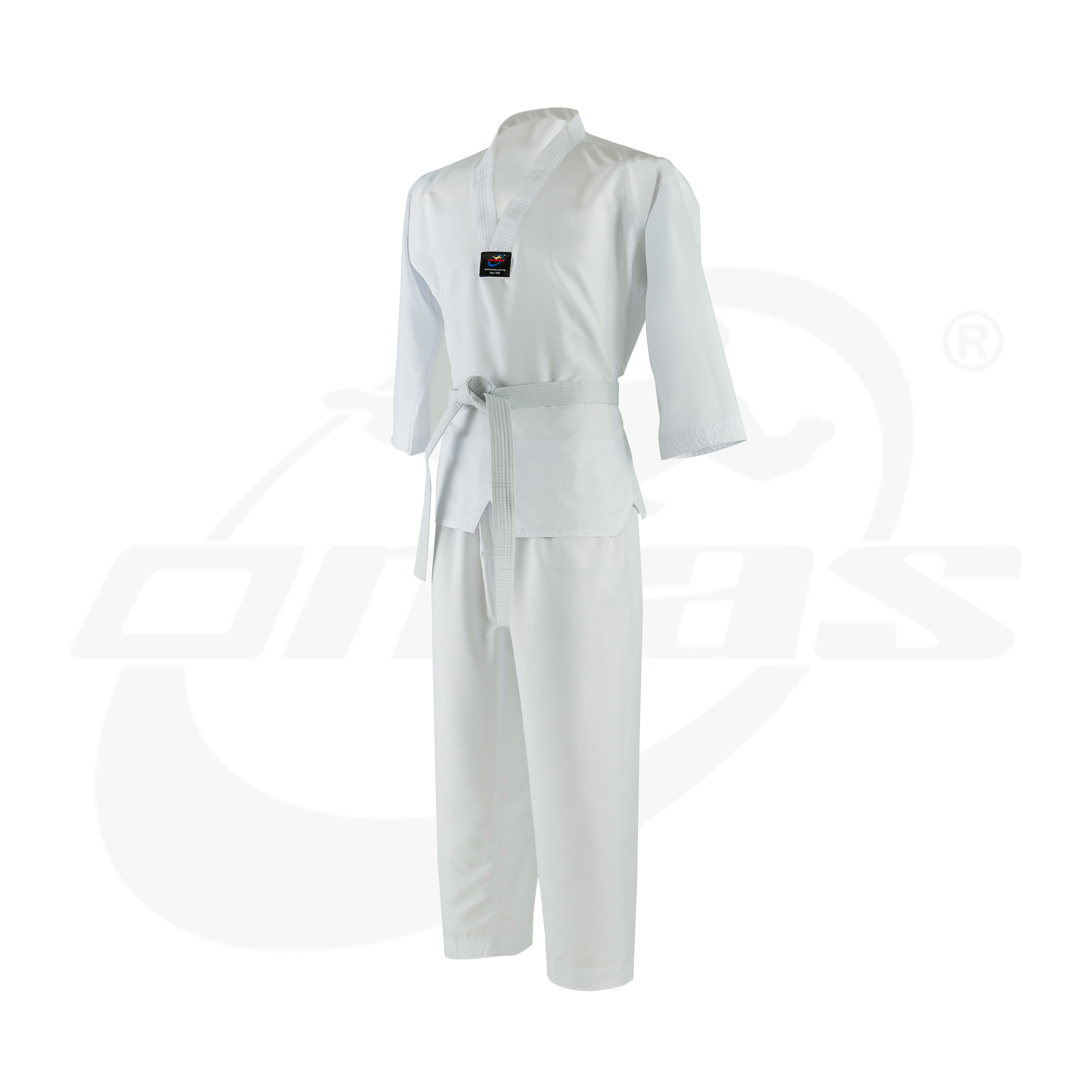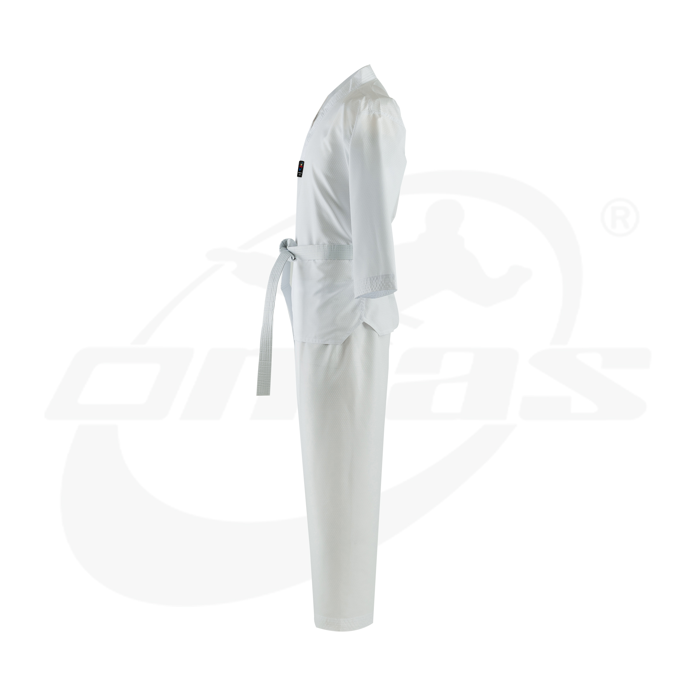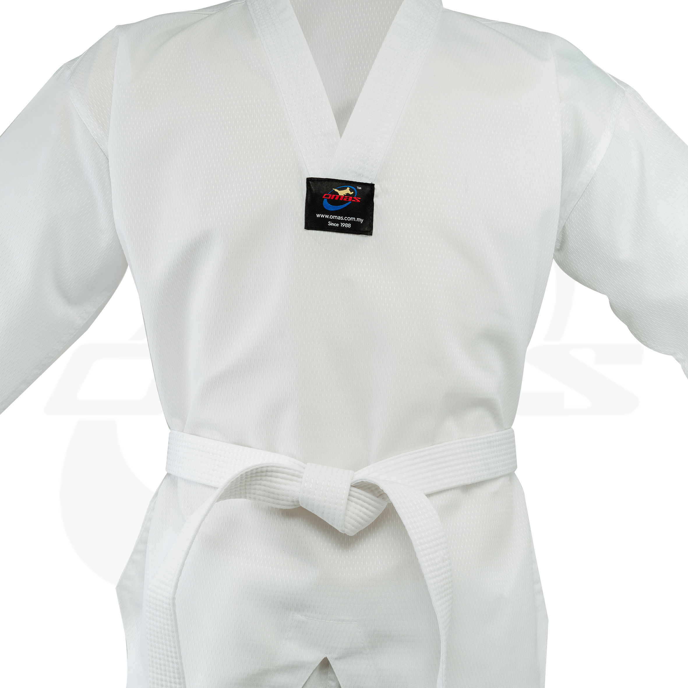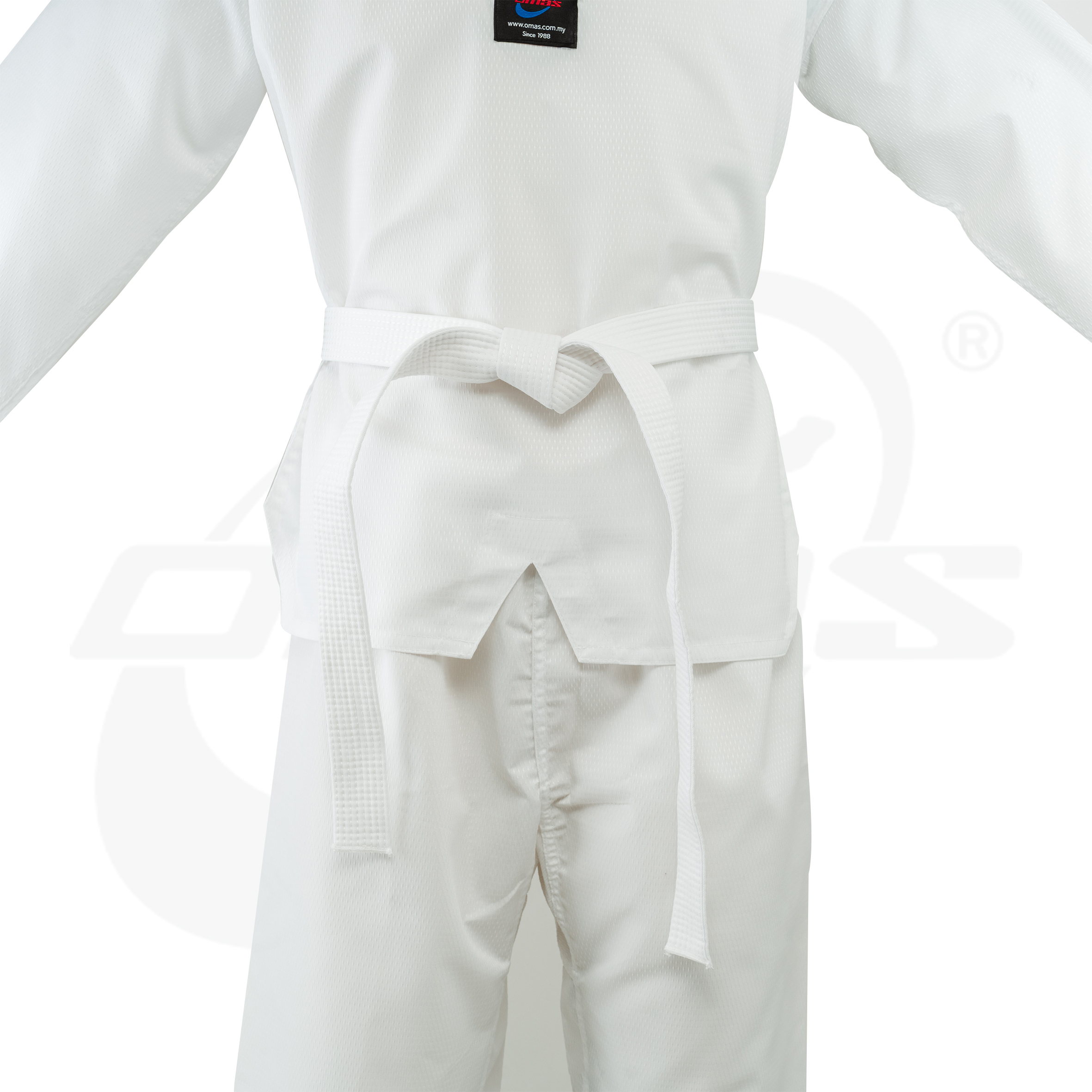 OMAS WT Colour Belt Uniform adalah dobok permulaan terbaik untuk pelajar Taekwondo. Diperbuat daripada kain TEAR DROP poliester/kapas berkualiti tinggi, ia menawarkan ketahanan, keselesaan, dan kebebasan pergerakan. Bahagian belakang bercetak dengan perkataan TAEKWONDO, melambangkan keaslian dan semangat dalam latihan.