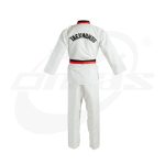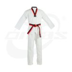The OMAS WT Poom Collar Uniform is an excellent starter dobok, crafted from fine-quality TEAR DROP polyester/cotton fabric. The back is printed with the bold TAEKWONDO wording, giving it a professional look for aspiring Taekwondo students.