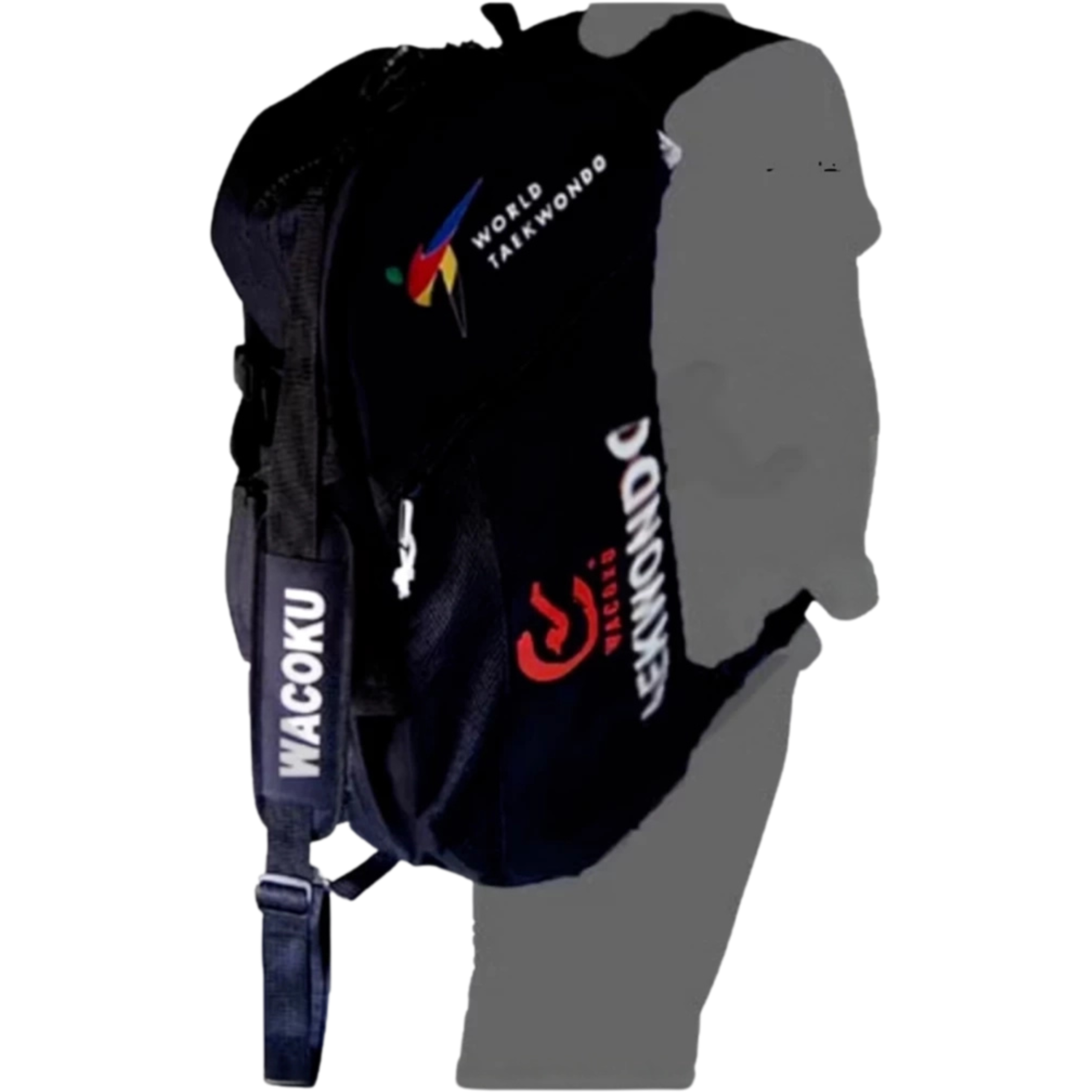 he WACOKU WT Taekwondo Sports Bag is WT Approved and designed for practicality and durability. It can be used as a duffel bag or backpack, making it ideal for training, competitions, and travel. Made from durable canvas, mesh, and nylon, it features multiple zip compartments with heavy-duty plastic zippers to keep your equipment secure.